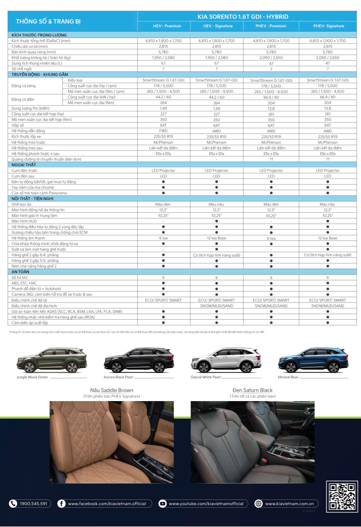 | KIA SORENTO – 1.6 HEV PREMIUM: | 1139 Triệu đ |